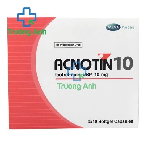 - Acnotin 10mg là thuốc chứa thành phần sotretinoin - là hoạt chất điều trị mụn rất phổ biến hiện nay và được kê đơn rất nhiều ở các bệnh viện da liễu. Acnotin 10mg được sản xuất và phân phối bởi Công ty Mega Lifesciences Pty Ltd.