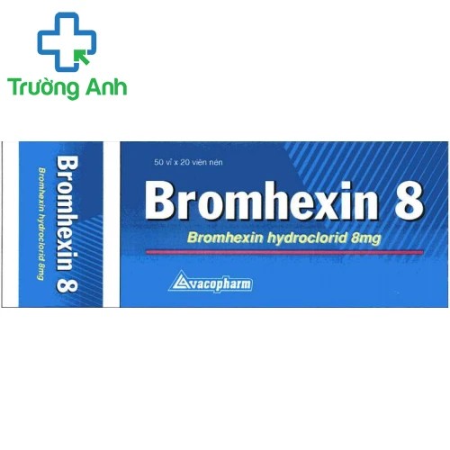 - Bromhexin 8 Vacopharm được sản xuất bởi Công ty cổ phần dược Vacopharm, được sử dụng trong điều trị rối loạn tiết dịch phế quản, nhất là trong viêm phế quản cấp tính, đợt cấp tính của viêm phế quản mạn tính. Ngoài ra, thuốc còn được dùng như là chất bổ trợ với kháng sinh khi bị nhiễm khuẩn nặng đường hô hấp.