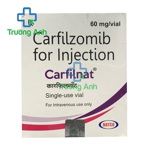 - Carfilnat 60mg, với thành phần chính Carfilzomib, là một loại thuốc được sử dụng trong điều trị ung thư, đặc biệt là trong trường hợp bệnh nhân mắc đa u tủy xương - một loại ung thư ảnh hưởng đến các tế bào trong tủy xương. Carfilzomib hoạt động bằng cách ức chế proteasome, một enzyme quan trọng trong việc phân hủy protein của tế bào ung thư, từ đó giúp giảm sự phát triển và lan rộng của tế bào ác tính trong cơ thể. Điều này giúp kéo dài thời gian sống của bệnh nhân và cải thiện chất lượng cuộc sống trong quá trình điều trị. Carfilnat thường được dùng kết hợp với các loại thuốc khác như dexamethasone và lenalidomide để đạt hiệu quả tối ưu