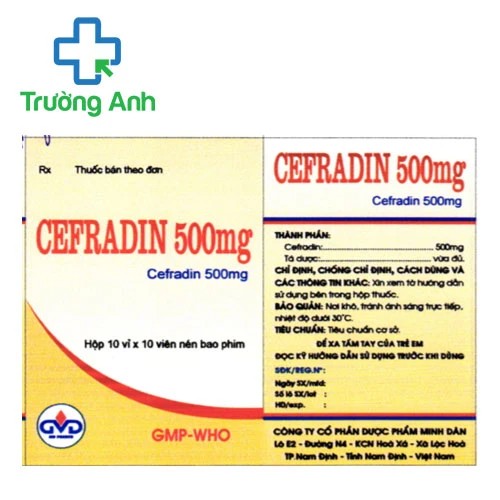 - Cefradin 500mg MD Pharco (viên nén) là thuốc được sản xuất bởi Công ty cổ phần Dược phẩm Minh Dân, với thành phần chính Cefradin giúp điều trị các nhiễm khuẩn như nhiễm khuẩn đường hô hấp, nhiễm khuẩn da và cấu trúc da, nhiễm khuẩn đường tiết niệu, nhiếm khuẩn trong phẫu thuật.