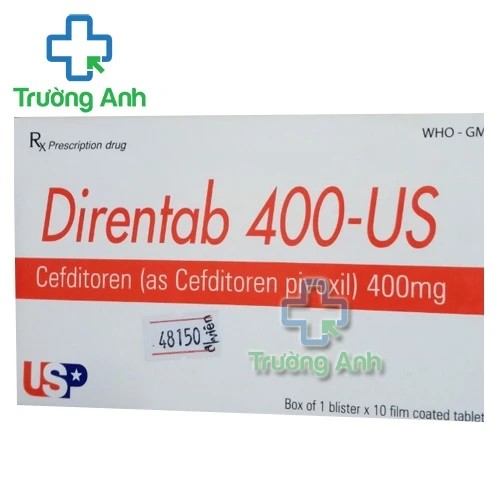 - Direntab 400-US chứa thành phần chính là Cefditoren, một kháng sinh thuộc nhóm cephalosporin thế hệ thứ ba, có khả năng tiêu diệt vi khuẩn thông qua ức chế tổng hợp thành tế bào vi khuẩn. Direntab 400-US được chỉ định để điều trị nhiều loại nhiễm khuẩn khác nhau như viêm họng, viêm phế quản, nhiễm khuẩn đường hô hấp dưới và nhiễm trùng da. Thuốc mang lại hiệu quả cao trong việc kiểm soát nhiễm khuẩn nhờ khả năng ngăn chặn sự phát triển và lan rộng của vi khuẩn, giúp bệnh nhân hồi phục nhanh chóng và giảm nguy cơ tái phát. Direntab 400-US là lựa chọn hữu hiệu trong việc điều trị nhiễm khuẩn, đặc biệt đối với các trường hợp vi khuẩn kháng kháng sinh thông thường.