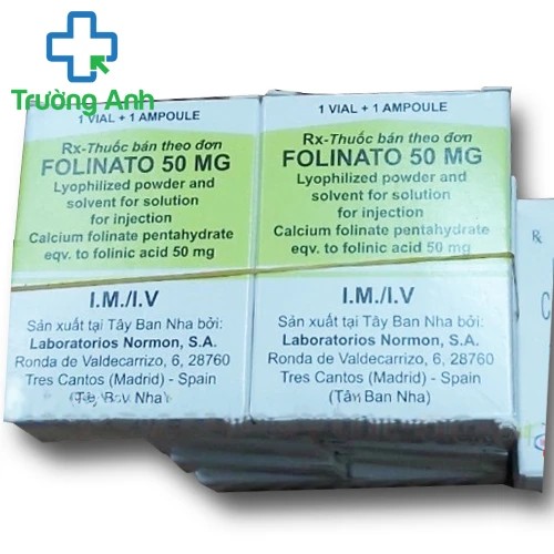 - Folinato 50mg là thuốc với thành phần chính là Calci Folinat giúp giải độc methotrexat thường được sử dụng trên các bệnh nhân ung thư. Folinato 50mg là sản phẩm được sản xuất bởi hãng dược phẩm Laboratorios Normon S.A của Tây Ban Nha