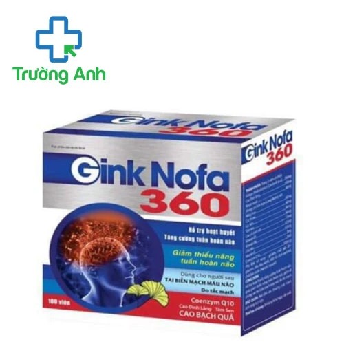 - Gink Nofa 360 Santex là sản phẩm giúp hỗ trợ hoạt huyết tăng cường tuần hoàn não bộ, với các thành phần chính có trong sản phẩm giúp giảm các triệu chứng của thiểu năng tuần hoàn não như đau đầu, chóng mặt, hoa mắt, đau mỏi vai gáy, tê bì chân tay…ngoài ra sản phẩm còn hỗ trợ người sau tai biến mạch máu não do tắc mạch.