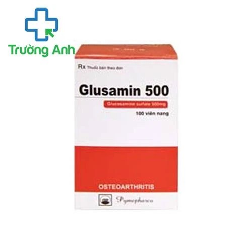 - Glusamin 500mg Pymepharco là thuốc có chứa thành phần Glucosamin sulfat (dưới dạng Glusamin sulfat natri clorid) có tác dụng giúp làm giảm triệu chứng của thoái hóa khớp gối nhẹ và trung bình.