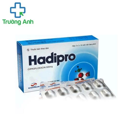 Hadipro 500mg là một loại thuốc kháng sinh do Công ty Cổ phần Dược Hà Tĩnh sản xuất, với thành phần chính là Ciprofloxacin hydroclorid. Đây là một kháng sinh thuộc nhóm fluoroquinolon, có tác dụng mạnh mẽ trong việc tiêu diệt vi khuẩn gây nhiễm trùng. Hadipro 500mg được sử dụng phổ biến trong điều trị các bệnh nhiễm khuẩn ở đường hô hấp, nhiễm trùng đường tiết niệu, nhiễm khuẩn da và mô mềm, cũng như một số bệnh nhiễm khuẩn đường tiêu hóa. Thuốc được bào chế dưới dạng viên nén bao phim, giúp bảo vệ hoạt chất khỏi sự phân hủy trong dạ dày, tăng cường khả năng hấp thu và hiệu quả điều trị.