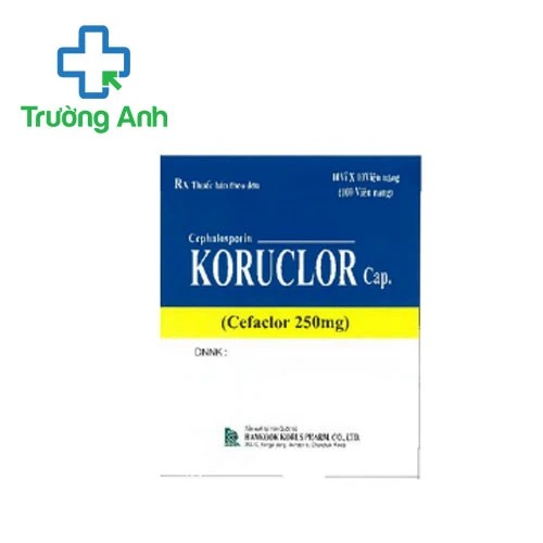 - Koruclor cap. là thuốc điều trị các nhiễm khuẩn đường hô hấp do vi rút nhạy cảm gây ra như viêm tai giữa cấp, viêm xoang cấp, viêm họng, viêm amidan, viêm phổi, viêm phế quản, nhiễm khuẩn đường tiết niệu, nhiễm khuẩn da...thuốc được sản xuất bởi Hankook Korus Pharm.Co., Ltd ( Hàn Quốc).