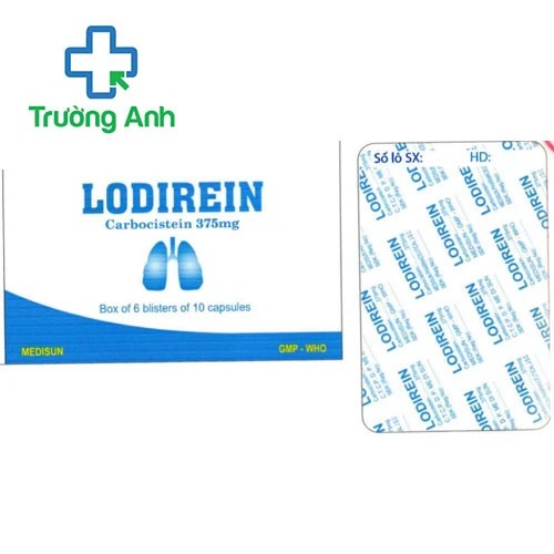 - Lodirein là thuốc dùng trong giảm đau và điều trị triệu các bệnh đường hô hấp có tăng tiết đàm nhiều và nhầy nhớt. Thuốc có hoạt chất chính chứa Carbocistein 375mg, được chỉ định trong các trường hợp: viêm phế quản, viêm mũi họng, hen phế quản, tắc nghẽn đường hô hấp cấp và mạn tính