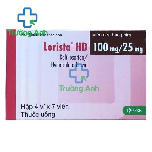 Lorista HD 100mg/25mg là thuốc điều trị tăng huyết áp (cao huyết áp) do công ty KRKA sản xuất tại Slovenia. Thuốc Lorista HD có số đăng ký là VN-22907-21, phù hợp dùng cho người từ 18 tuổi trở lên. Thuốc có thành phần là Losartan kali và Hydrochlorothiazide, không phù hợp dùng cho phụ nữ có thai.