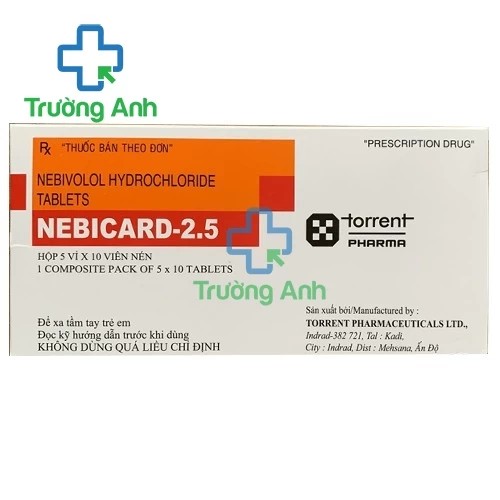- Nebicard-2.5mg là thuốc được chỉ định điều trị tăng huyết áp vô căn, ngoài ra Nebicard-2.5mg còn dùng điều trị suy tim ổn định ở bệnh nhân lớn tuổi, ngăn ngừa đau thắt ngực. Thuốc có xuất xứ Ấn Độ.