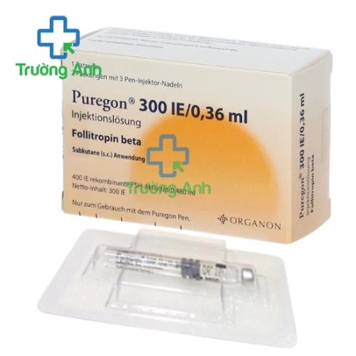 Puregon 300IU/0.36ml là dung dịch tiêm điều trị không rụng trứng và kích thước buồng trứng có kiểm soát, ngoài ra còn giảm sinh tinh trùng ở nam giới do nhược năng tuyến sinh dục.