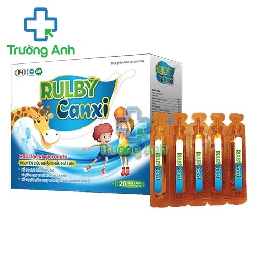 - Rulby Canxi là sản phẩm được sản xuất bởi Công ty TNHH dược phẩm Fusi. Rulby Canxi bổ sung canxi, vitamin D3 cho cơ thể giúp xương răng chắc khỏe. Ngoài ra, Rulby Canxi còn giúp hỗ trợ phát triển chiều cao và giảm nguy cơ còi xương ở trẻ nhỏ, giúp giảm nguy cơ loãng xương ở người cao tuổi.