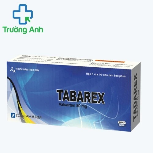 TABAREX là một loại thuốc do Công ty Cổ phần Dược phẩm Đạt Vi Phú (Davipharm) sản xuất, với thành phần chính là Valsartan. Thuốc này thuộc nhóm chất ức chế thụ thể angiotensin II (ARB), thường được sử dụng để điều trị bệnh cao huyết áp (tăng huyết áp) và suy tim. Cơ chế hoạt động của Valsartan là ngăn chặn tác động của hormone angiotensin II, một loại hormone làm co mạch máu, giúp giãn nở mạch máu và cải thiện lưu thông máu. Điều này giúp giảm huyết áp, giảm tải cho tim, và giúp tim hoạt động dễ dàng hơn. Ngoài ra, TABAREX còn được dùng để giảm nguy cơ gặp các biến cố tim mạch như đau tim hoặc đột quỵ ở những bệnh nhân có nguy cơ cao. Đây là một giải pháp quan trọng trong việc quản lý các bệnh lý về huyết áp và tim mạch.