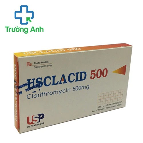 - USClacid 500 USP là một loại thuốc kháng sinh mạnh mẽ, được sử dụng trong điều trị các bệnh nhiễm trùng do vi khuẩn nhạy cảm. Mỗi viên nén bao phim của USClacid 500 chứa 500 mg clarithromycin, một kháng sinh thuộc nhóm macrolid, giúp ức chế sự phát triển của vi khuẩn. Việc sử dụng thuốc này chỉ nên diễn ra sau khi đã xác định chính xác tình trạng nhiễm khuẩn, vì việc lạm dụng có thể dẫn đến sự gia tăng của các chủng vi khuẩn kháng thuốc. Thành phần clarithromycin trong USClacid 500 chủ yếu được thải trừ qua gan và thận. Đối với những bệnh nhân có suy gan nhưng chức năng thận vẫn bình thường, thuốc có thể được sử dụng mà không cần điều chỉnh liều lượng. Tuy nhiên, đối với những người có chức năng thận suy giảm nặng (độ thanh thải < 25 ml/phút) hoặc có tiền sử rối loạn chuyển hóa porphyrin, cần thận trọng khi phối hợp clarithromycin với ranitidin bismuth citrate. Việc này có thể gây ra những tác động không mong muốn, do đó người dùng nên tham khảo ý kiến bác sĩ trước khi bắt đầu điều trị.