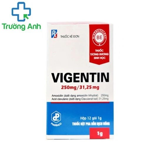 - Vigentin 250mg/31,25mg là một loại kháng sinh kết hợp, được sử dụng rộng rãi để điều trị các bệnh nhiễm khuẩn. Thuốc có chứa hai thành phần chính là amoxicillin (250mg) và acid clavulanic (31,25mg), giúp tăng cường tác dụng kháng khuẩn và mở rộng phổ tác dụng. Vigentin thường được chỉ định để điều trị các nhiễm khuẩn đường hô hấp, tiết niệu, da và mô mềm. Tuy nhiên, việc sử dụng thuốc cần tuân thủ theo đúng chỉ định của bác sĩ để đảm bảo hiệu quả điều trị và tránh các tác dụng phụ không mong muốn.