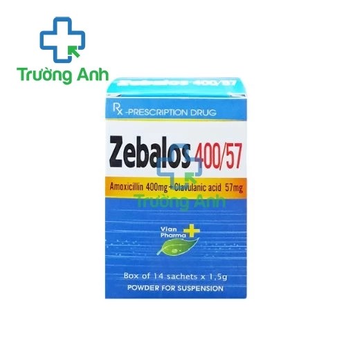 - Với sự phối hợp của hai thành phần Amoxicilin và Acid clavulanic, thuốc Zebalos 400/57 Tipharco mang đến nhiều công dụng cho sức khỏe. Thuốc được khuyến cáo điều trị cho những bệnh nhân mắc các bệnh lý nhiễm khuẩn do các vi khuẩn nhạy cảm gây ra như viêm xoang, viêm phổi, nhiễm khuẩn da và mô mềm,... Liều dùng của Zebalos 400/57 Tipharco được lựa chọn để điều trị phụ thuộc vào mức độ nghiêm trọng và vị trí nhiễm khuẩn cũng như độ tuổi, cân nặng,... của từng người. Thuốc được bào chế dưới dạng bột, nên pha tối thiểu với 20ml nước trước khi uống.